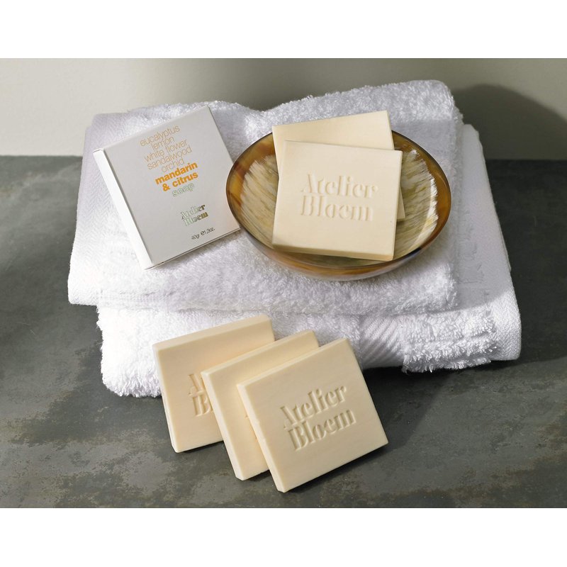 Stimulate your senses with Atelier Bloem Mandarin and Citrus travel-size bar soaps, designed exclusively for Kimpton Hotels. Ideal for travel and home, each 1.3-oz bar will become an essential part of your skincare routine wherever you are. Refreshing notes of eucalyptus, lemon, sandalwood, and orchid combine with mandarin and citrus for a transcendent cleansing experience. Made with key ingredients like mandarin and citrus, each bar of soap gently purifies and calms skin from head to toe. Scatter them around your shower space, throughout your guest bathroom, and in your carryon for fragrant allure at every turn. Atelier Bloem products are paraben-free, cruelty-free, and gentle on the skin.