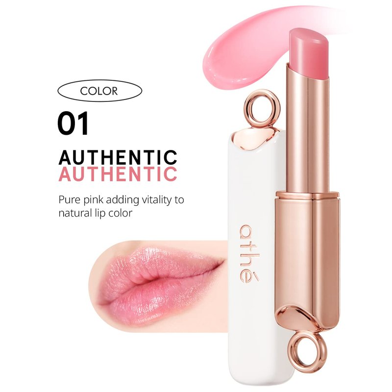 ATHÉ Authentic Lip Balm 01 AUTHENTIC (Tinted), Lightweight Wear & Plumping Lips without Stickiness, Moisturizing & Nourishing Plant-Based Vegan Chapstick for Dry, Petrolatum Free, Cruelty-Free