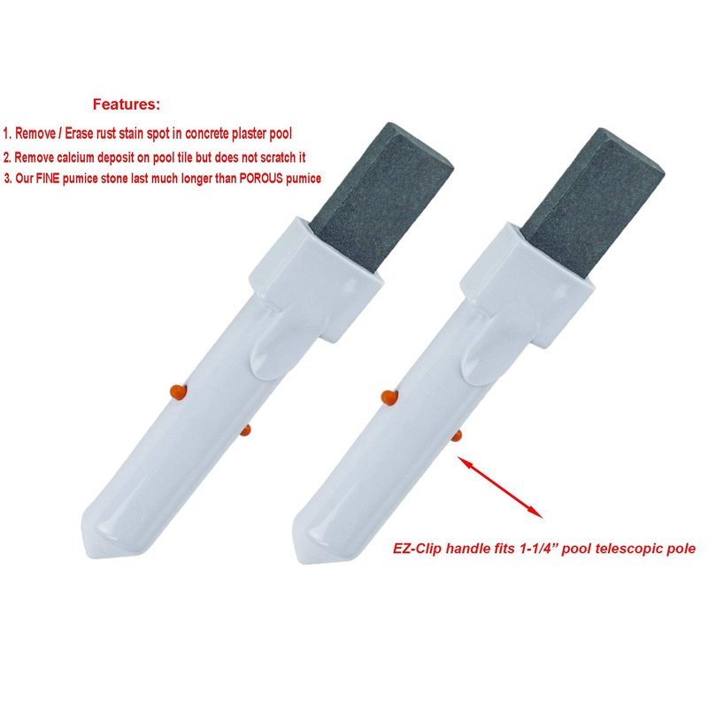 - Pumice stone with easy-clip handle for using with 1-1/4" pool telescopic pole