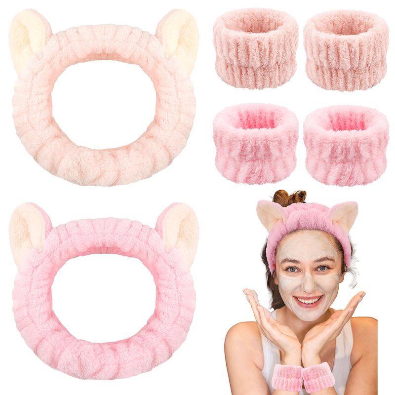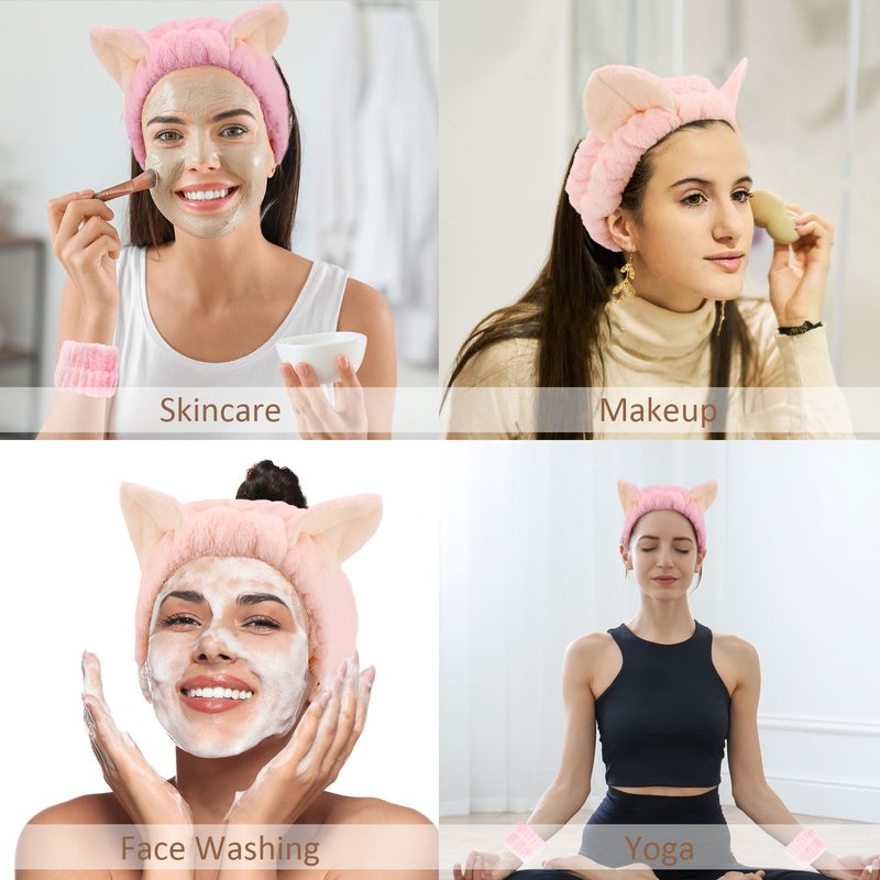 - 【Package Included】2 piece cute cat ears spa headband and 2 pairs of wristbands, perfect for keeping your hair out of face during various activities.