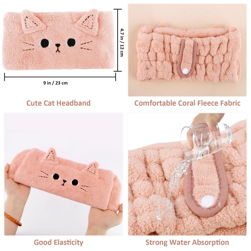 - 【Soft and Comfortable】Crafted from soft coral fleece, our cartoon face wash headband offer a comfortable fit with excellent elasticity and absorbency. The adorable cat design adds a charming touch to your beauty routine.