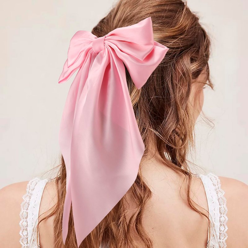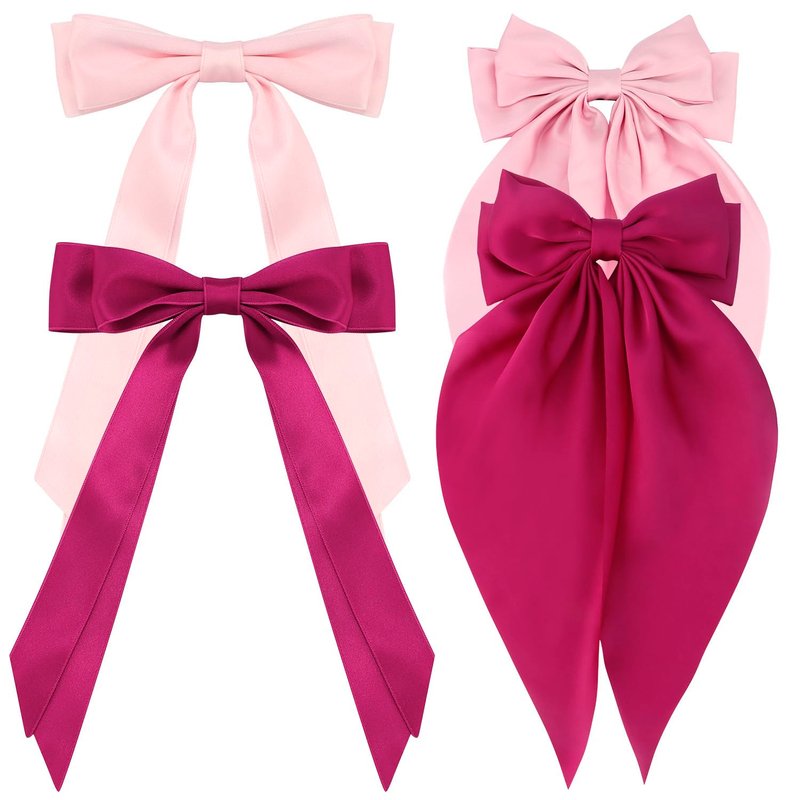 Atoden Pink Hair Bows 4 Pcs Silky Satin Hair Ribbons Cute Coquette Bows Oversized Long Tail Bow Hair Barrettes Metal Clips Big Bowknot Hair Accessories for Women Teen Girl Gifts Trendy Stuff