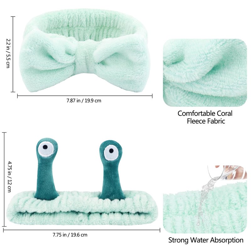 - 【Soft and Comfortable】Crafted from soft coral fleece, our makeup headband and face wash headband offer a comfortable fit with excellent elasticity and absorbency. The adorable snail and bowknot design adds a charming touch to your beauty routine.
