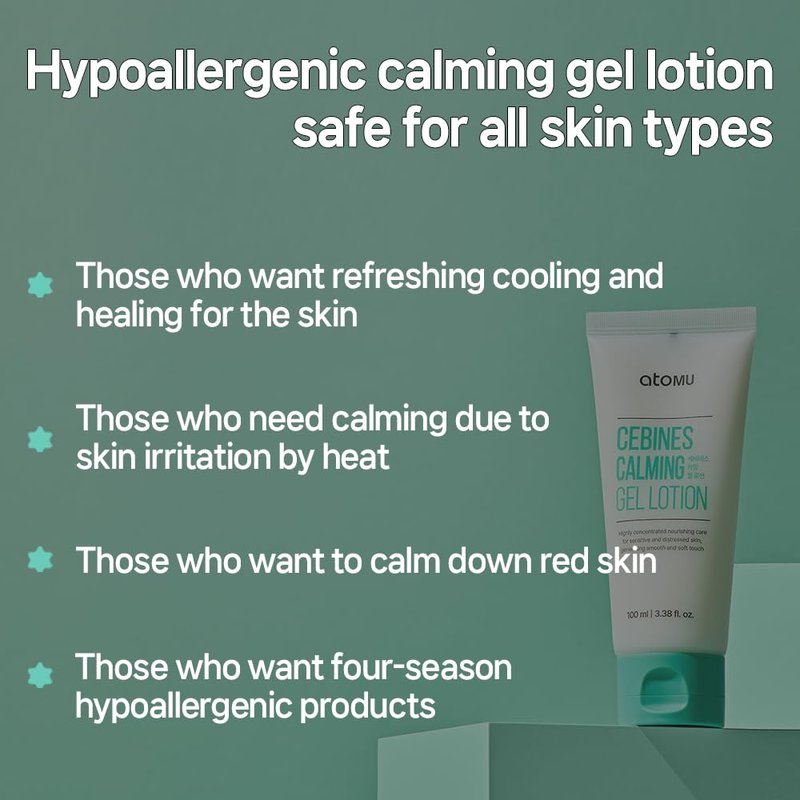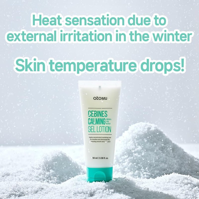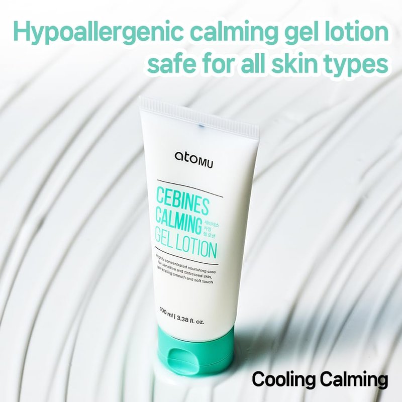 Atomu Cebines Calming Gel Lotion, Nourishing Cooling Facial Lotion for Sensitive and Distressed Skin, Hypoallergenic Soothing Redness Cream, All Skin Types, Korean Skincare (3.38 fl.oz.)