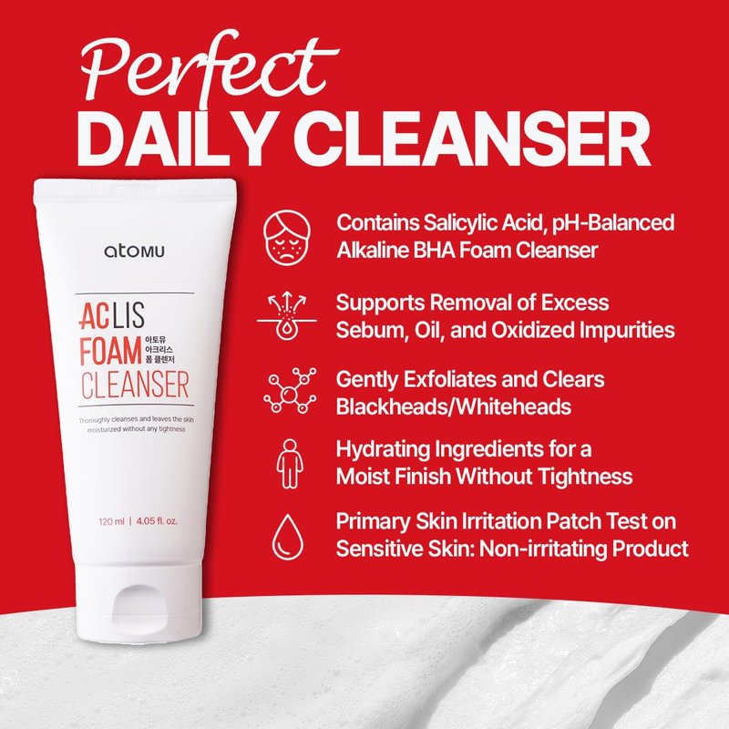 ATOMU Mildly alkaline oily acne sebum removal deep cleansing ACLIS foam cleanser, 4.05 fl.oz.