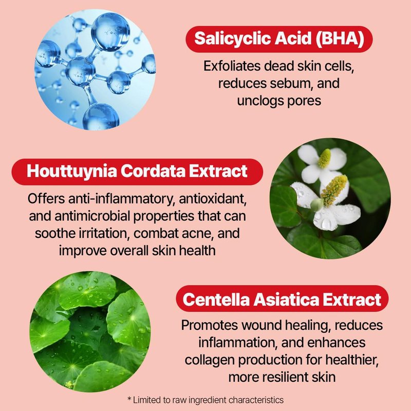 How to use Dispense a moderate amount and generate enough foam. Gently apply it all over the face and rinse thoroughly with lukewarm water Ingredients Water, Glycerin, Palmitic Acid, Stearic Acid, Lauric Acid, Myristic Acid, Potassium Hydroxide, Glyceryl Stearate, Sodium Methyl Cocoyl Taurate, PEG-100 Stearate, Beeswax, Cocamidopropyl Betaine, Potassium Cocoyl Glycinate, Polyquaternium-7, Salicylic Acid, Allantoin, Ethyl Hexanediol, Fragrance, Sodium Chloride, Glyceryl Caprylate, Disodium EDTA, Quercus Robur Bark Extract, Hydroxyethylcellulose, Royal Jelly, Centella Asiatica Extract, Houttuynia Cordata Extract, Cirsium (Thistle) Flower/Leaf/Stem Extract, Sesamum Indicum (Sesame) Seed Extract, Thuja Orientalis Leaf Extract, Sodium Benzoate, Xanthan Gum, Propolis Extract, Polysorbate 60, Disodium Phosphate, Sodium Phosphate