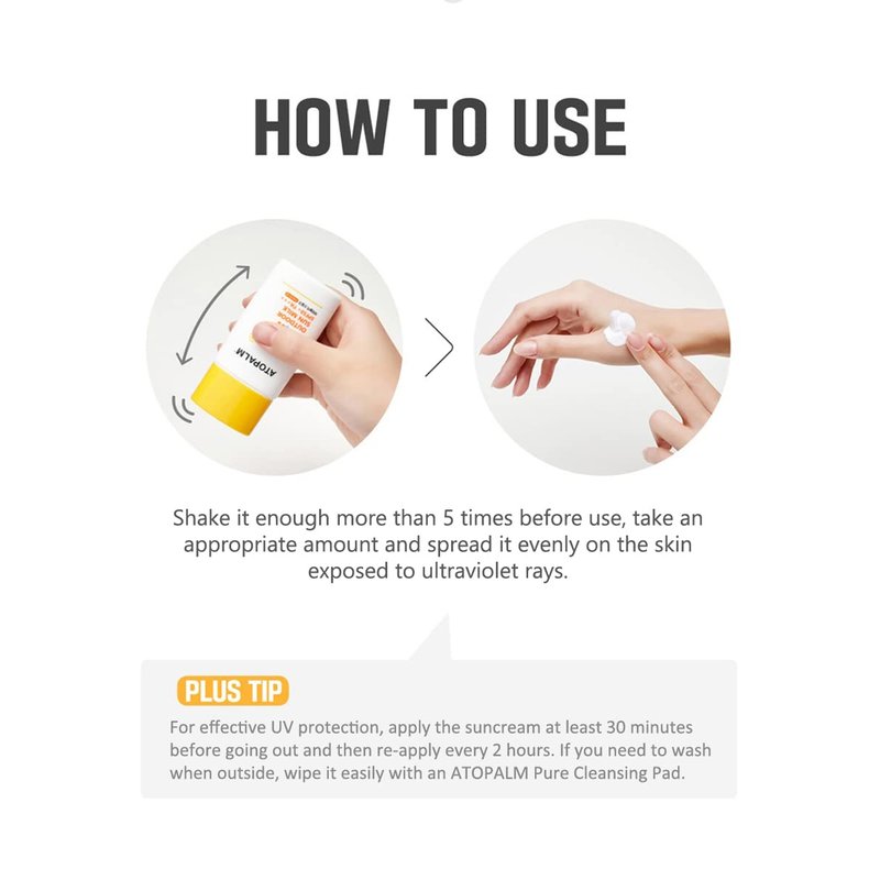 - How to use: Shake it enough more than 5 times before use, take an appropriate amount and spread it evenly on the skin exposed to ultraviolet rays. For effective UV protection, apply the suncream at least 30 minutes before going out and then reapply every 2 hours.