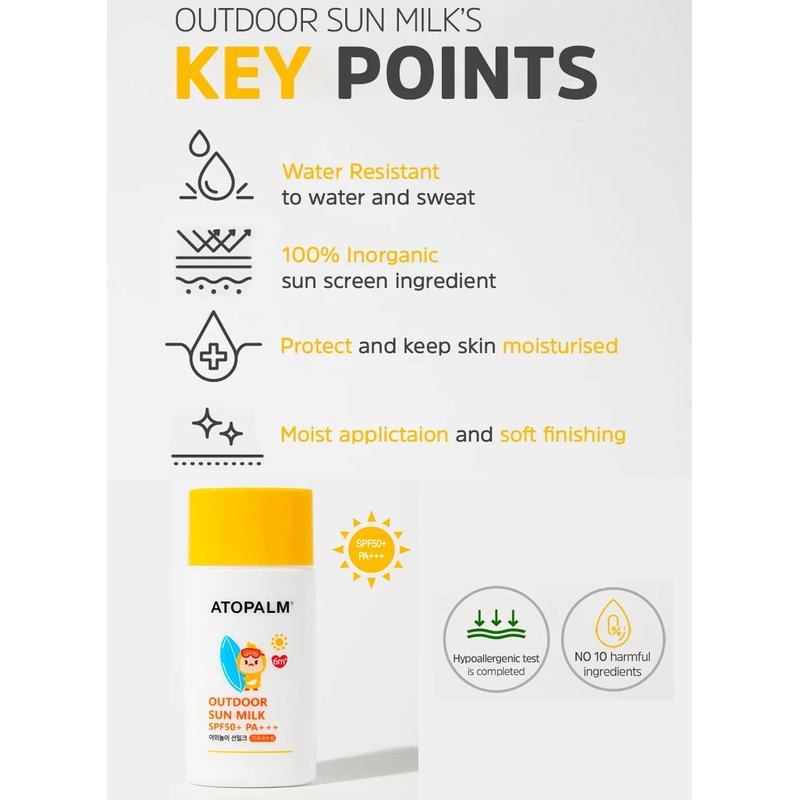 ATOPALM Outdoor Sun Milk SPF50+ PA+++ 55g, Waterproof Baby Kids adult, MLE Korean Mineral Sunscreen