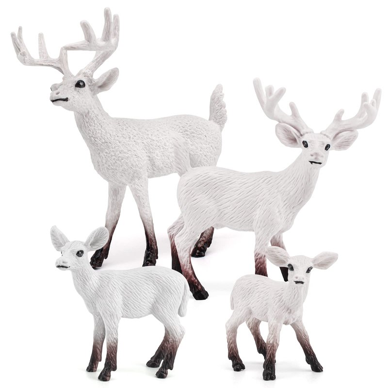 Atralo Service Wildlife Animal Figures Model Playsets 4 PCS White-Tailed Deer Figure Model Toy Desktop Decoration Collection Party Favors Toys for Boys Girls Kids