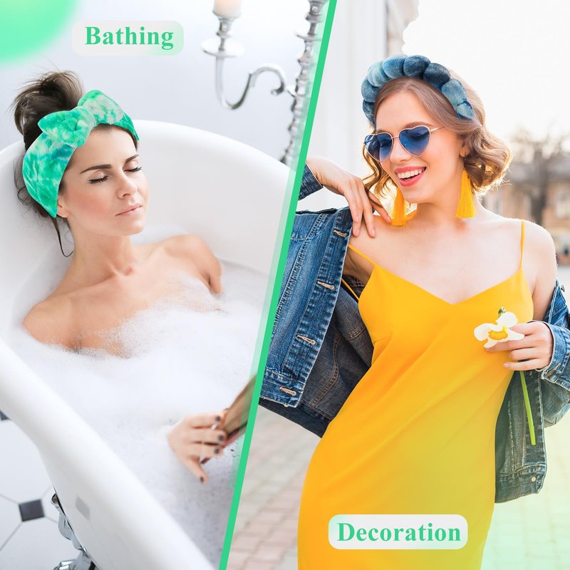 - 🎀【WATER ABSORPTION】Cute Spa Headbands can prevent water from spreading to your arms and keep your hair dry,They're comfortable to touch and easy to clean,Can be reused for a for a long time.