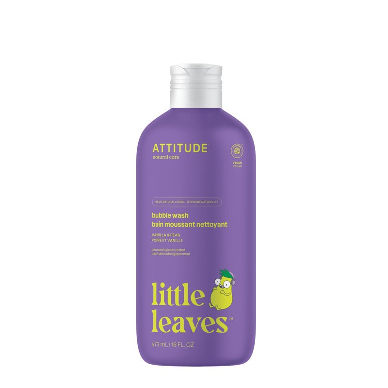 ATTITUDE Bubble Wash for Kids, EWG Verified Bubble Bath, Hair Shampoo and Body Soap, Dermatologically Tested, Plant- and Mineral-Based, Vegan, Vanilla & Pear, 16 Fl Oz