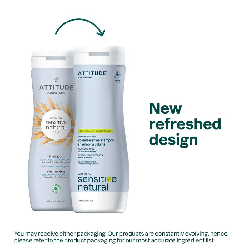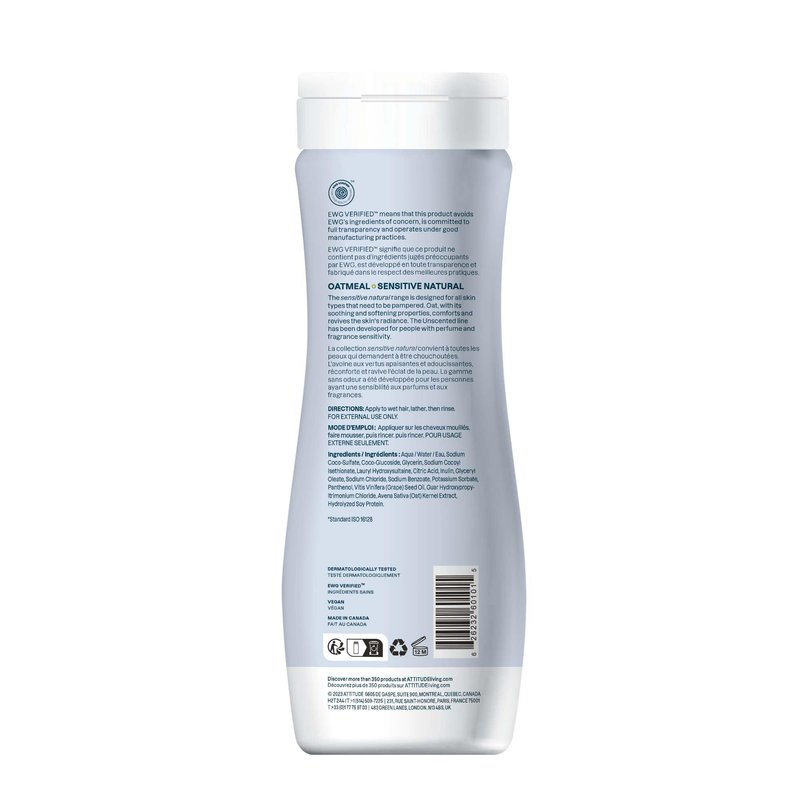 ATTITUDE Hair Shampoo for Sensitive Dry Scalp, EWG Verified, Soothing Oat, For Thin Hair, Naturally Derived Ingredients, Vegan and Plant-Based, Volume and Shine, Unscented, 16 Fl Oz