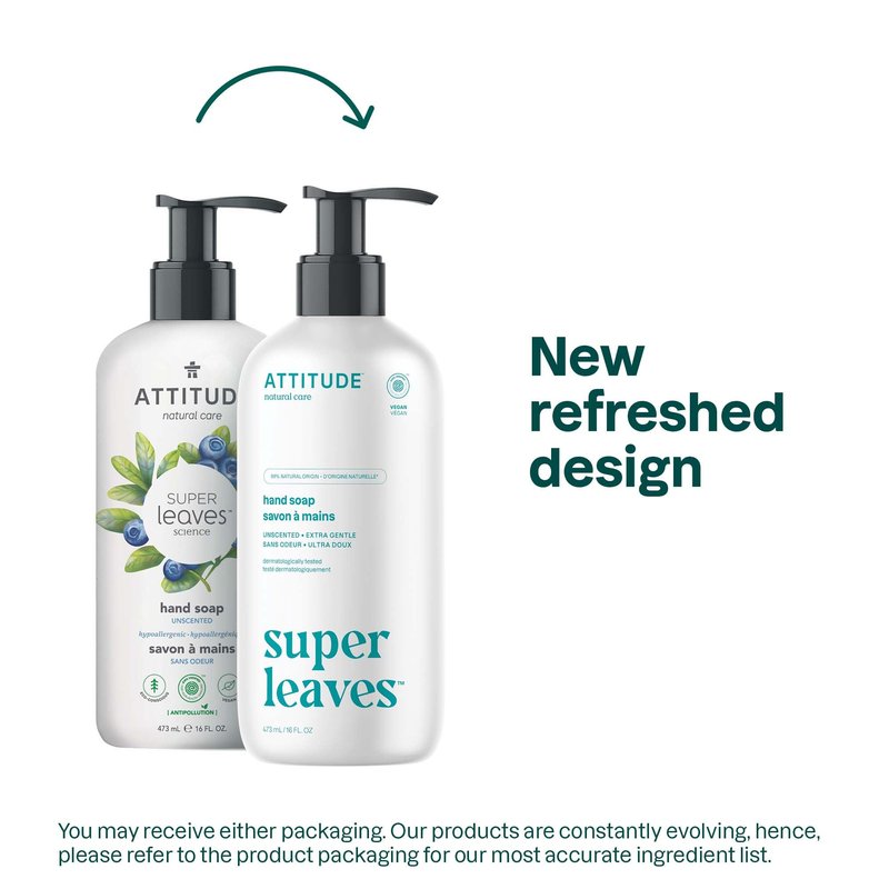 ATTITUDE Liquid Hand Soap, EWG Verified, Plant and Mineral-Based, Vegan Personal Care Products, Unscented, 16 Fl Oz