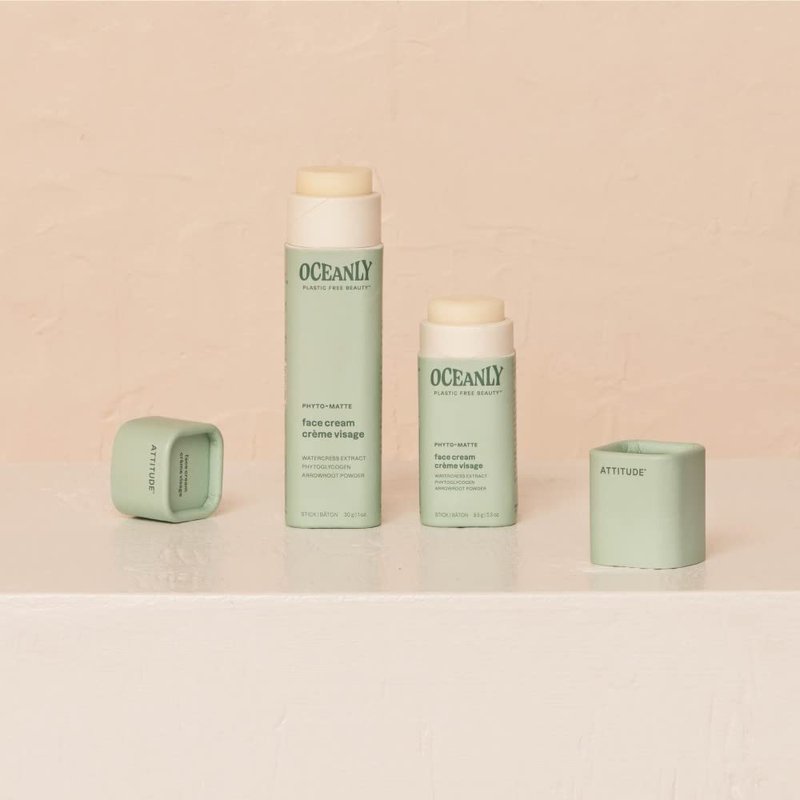 ATTITUDE Oceanly Face Cream Bar, EWG Verified, Plastic-free, Plant and Mineral-Based Ingredients, Vegan and Cruelty-free Beauty Products, PHYTO MATTE, Unscented, 0.3 Ounce