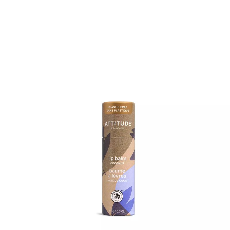 ATTITUDE Plastic-free Lip Balm, EWG Verified Plant- and Mineral-Based Ingredients, Vegan and Cruelty-free Personal Care Products, Coconut, 0.3 Oz