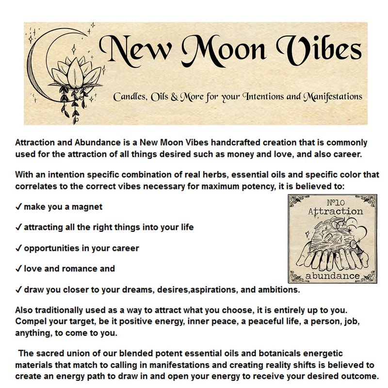 Created with potent ingredients known for their common wiccan, hoodoo and spiritual powers to relax and connect with the energies of the universe to bring forth your most desired intentions and affirmations.
