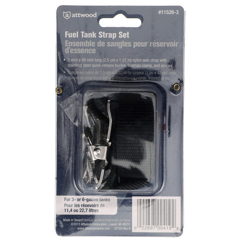 Attwood 11526-3 Fuel Tank Strap Set, for 3-6-Gallon Tanks, 1-Inch-Wide White Nylon Strap with Snap and Buckle, 48 Inches Long
