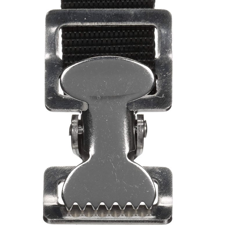 - 1"- wide white nylon web strap with zinc-plated carbon steel snap and quick-release buckle