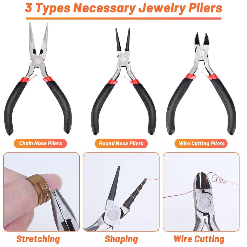 - Jewelry Tools for DIY Craft- Equid with essential jewelry making tools of 3 necessary jewelry pliers: round nose plier, wire cutting plier and chain nose plier help the professional or just amateur jewelry making lovers and starter to finish their jewelry making project, beading project, jewelry repair and other DIY projects