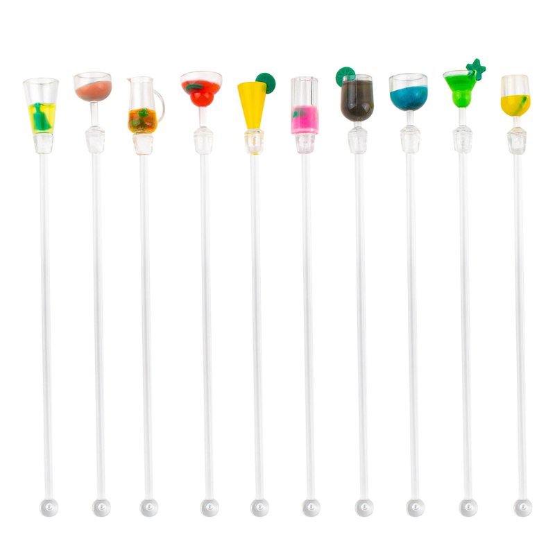 AUEAR, 10 Pack Swizzle Sticks Acrylic Colorful Cocktail Drink Stirrer Clear Shafts for Bars Cafes Restaurants Home Use