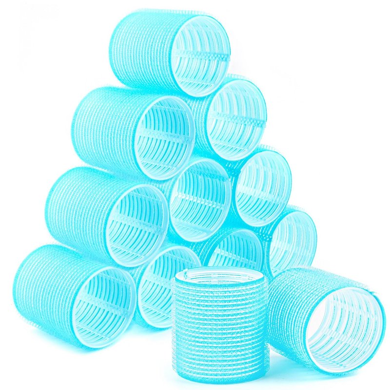 AUEAR, 12 Pack 2.1 Inch Self Grip Hair Rollers Curlers Salon Hair Curler Roller for Medium Hair Bangs Volume DIY Hairstyle Light Blue