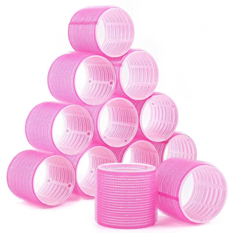 AUEAR, 12 Pack 2.5 Inch Jumbo Hair Curlers Roller Rollers Self Grip Hair Curlers for Long Hair Rose Red