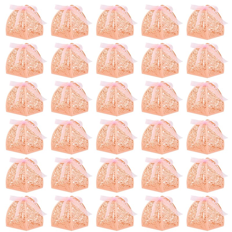 AUEAR, 50 Pack 2.4''x2.4'' Rose Candy Boxes Laser Cut Chocolate Gift Boxes for Wedding Bridal Shower Anniversary Birthday Party Favors (Pink)