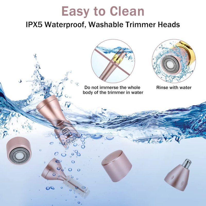 - 【4 in 1 Hair Remover】The electric razor for women contains 4 different interchangeable heads: body shaver head (mounted on the fuselage), long-haired blade head, eyebrow trimmer head, nose hair shaver head, which is enough to meet your different shaving requirements.