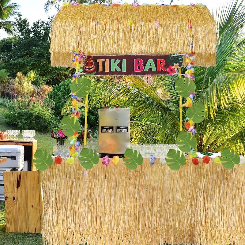 - Luau Party Supplies: Package includes 1 x faux straw-colored table skirt, 1 x tablecloth, 1 x Tiki banner,12 x palm leaves, 16 x cupcake toppers, 12 x 3D fruit drink straws,and 2 x tiki honeycomb centerpieces. Complete summer party decoration supplies to meet your any needs