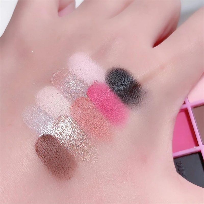 - Rich Glisten Colors: This eyeshadow palette includes 6 naked eyeshadow and 3 glitter eyeshadow.