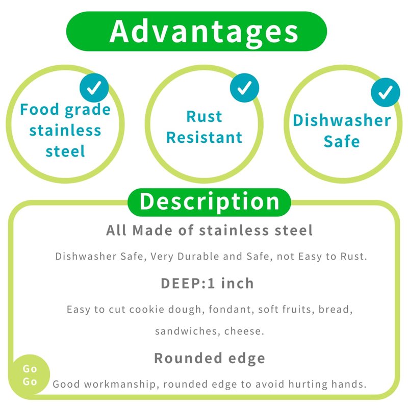 - DEEP:1 inch.Easy to cut cookie dough, fondant, soft fruits, bread, cheese.