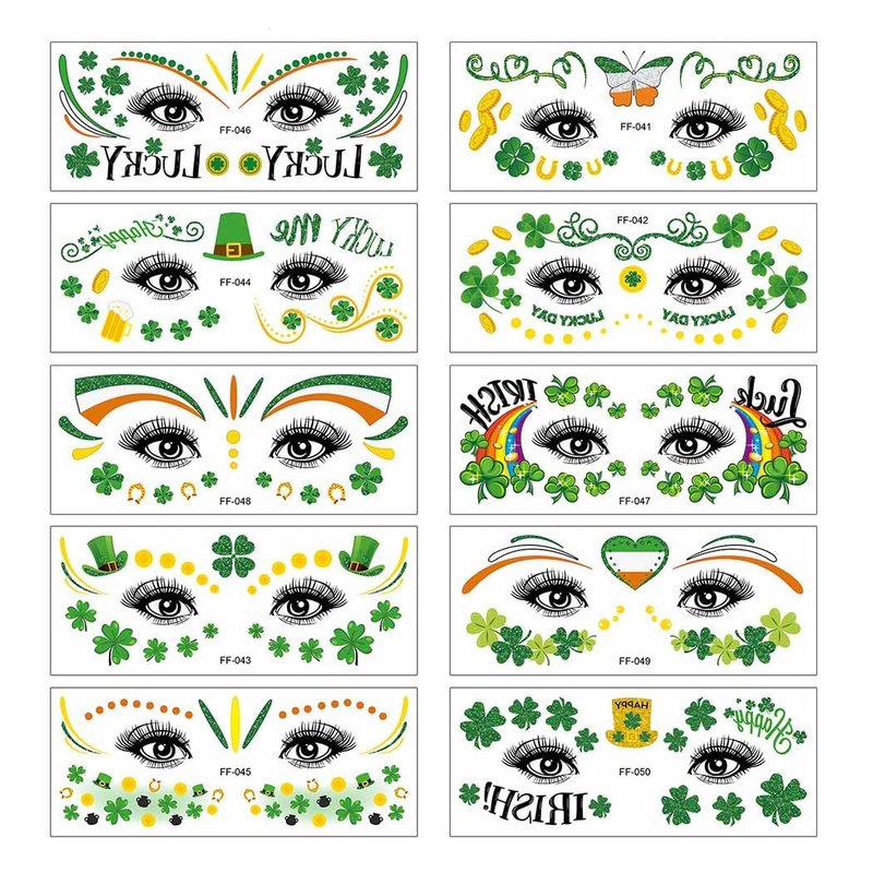 - They are three styles of Irish tattoos,and they are equally cute and exquisite with classic St.Patrick elements and classic green,to meet any of your requirement.Even at a party with lots of people,these glow tattoos will make you unique in the crowd.