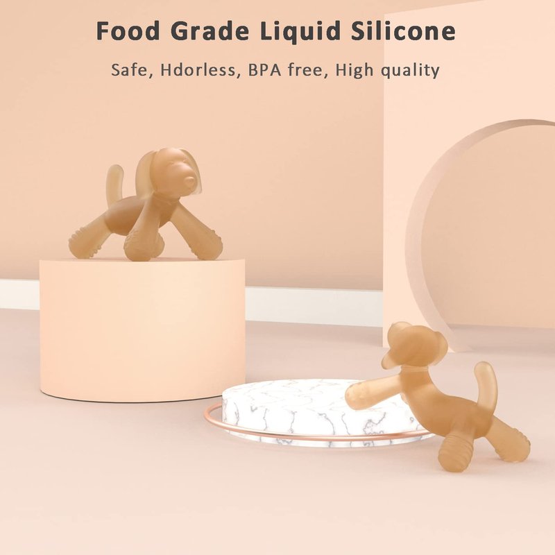 - 【BPA FREE, SAFE FOR BABY】Our dog shape teething toys are made of food grade liquid silicone, non-toxic, BPA free, lead free, and phthalate free. One-piece design, innovative active materials keep it from dropping and collecting dirt or hair, safe for your baby to use.