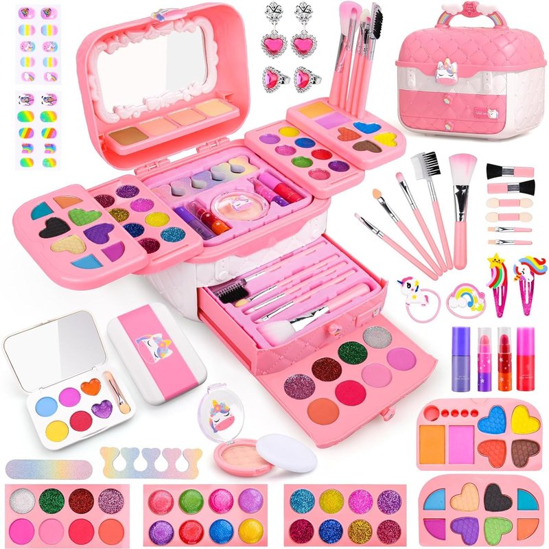 - š¦ćSkin-Friendly for kidsćOur makeup kit is made from CPSIA certified skin-friendly materials, ensuring Skin-Friendly to your child. It can be easily washed off with water after use.The brush slot design facilitates your makeup while providing a mess-free experience
