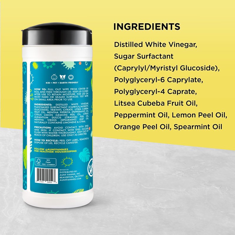 Aunt Fannie's Natural Cleaning Vinegar Wipes, Multipurpose Surface Cleaner, Bright Lemon Scent, 35 Count (Pack of 1), Packaging May Vary