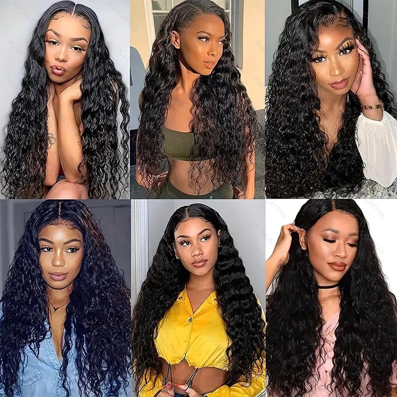 AUOCATTAIL Deep Wave Lace Front Wigs Hair 13x4 Pre Plucked 180 Density Deep Part Curly Wigs Simulation Human Hair for Black Women (30 Inch)