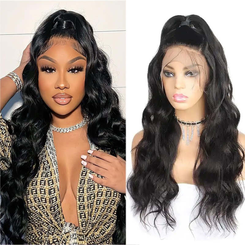 - Glueless deep wave lace front wig human hair, pre-plucked with baby hair, natural hairline