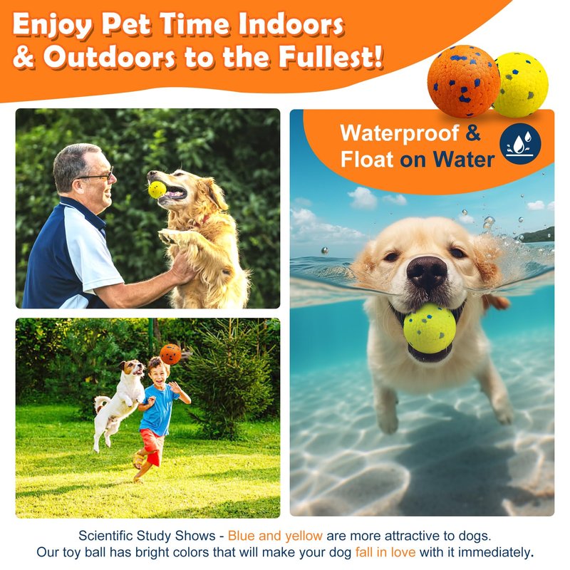 Whether it's outdoor training, beach chasing, or indoor play, these dog balls are designed to fit all situations. They float on water, making them ideal for water play, and are suitable for various scenarios to meet your dog's play needs anytime, anywhere.