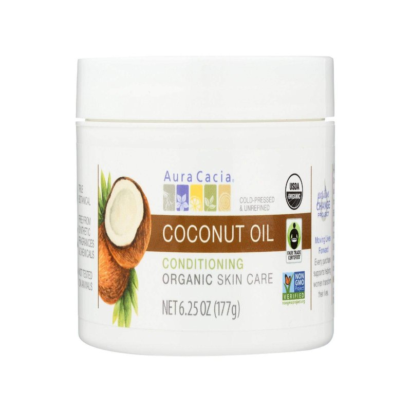 Aura Cacia Certified Organic Unrefined Coconut Oil, Fair Trade Certified | 6.25 fl. oz. | Cocos nucifera