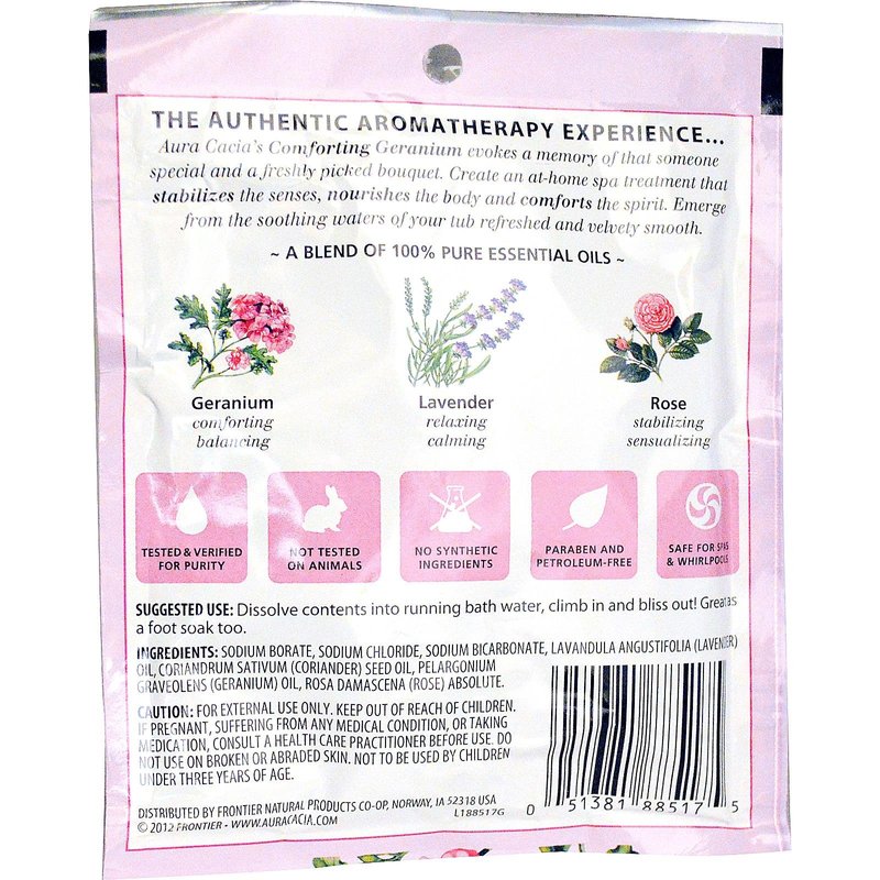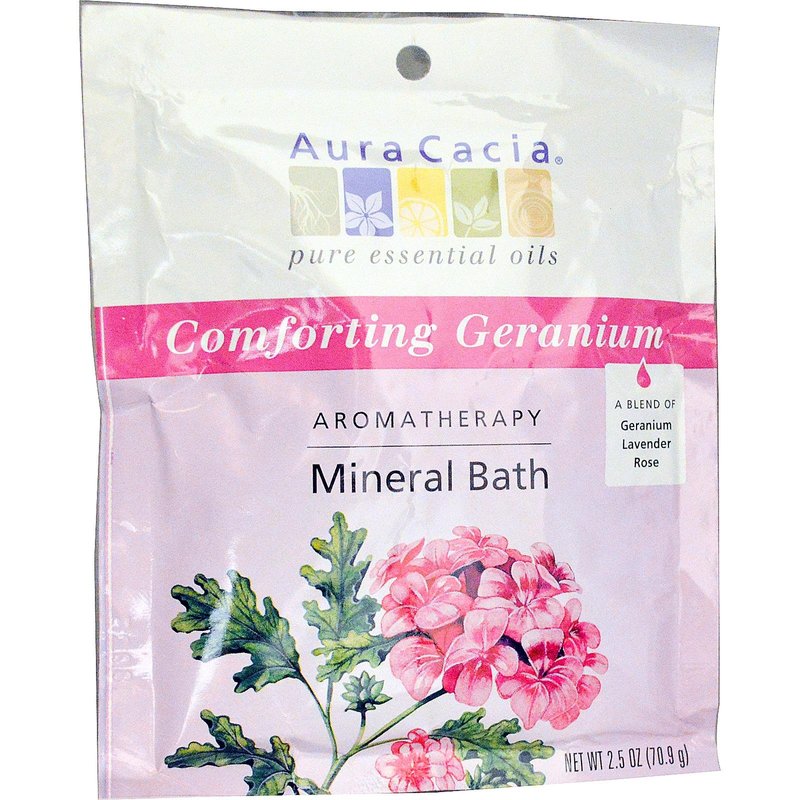 Aura Cacia Comforting Geranium Aromatherapy Mineral Bath | 2.5 oz. Packet | Rosa damascena