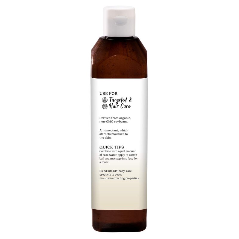 - ORGANIC VEGETABLE GLYCERIN - Sourced from non-GMO seeds (primarily soy), vegetable glycerin is the non-fatty component of vegetable oils. It is a clear, odorless liquid with powerful moisture-attracting properties and is a common ingredient used in formulating soaps, creams and lotions.