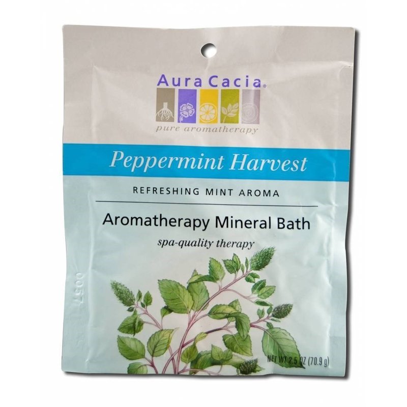 Aura Cacia Aromatherapy Mineral Bath Peppermint Harvest Description: Refreshing Mint Aroma Spa-Quality Therapy Like burying your nose in a bouquet of freshly picked peppermint leaves, Aura Cacia Peppermint Harvest evokes a garden bed of mint, sprinkled with cool dew. Create an at-home spa treatment that stimulates the senses, refreshes the body and revives the spirit. Achieve a renewed sense of balance and well-being. Emerge from the healing waters of your tub refreshed and velvety-smooth. Contains authentic essential oils that are GC/MS-tested to confirm 100% purity and naturalness. Safe for whirlpools and spas. Free Of Synthetic fragrances, colors or preservatives, petroleum, paraben. Disclaimer These statements have not been evaluated by the FDA. These products are not intended to diagnose, treat, cure, or prevent any disease.