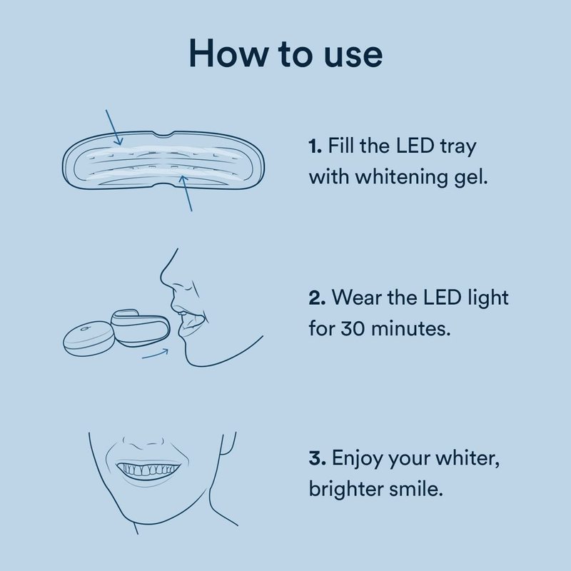 - [WHITENS FASTER] The LED light activates the molecules in the bleaching gel to whiten teeth faster and remove years of stains in just 30 minutes.