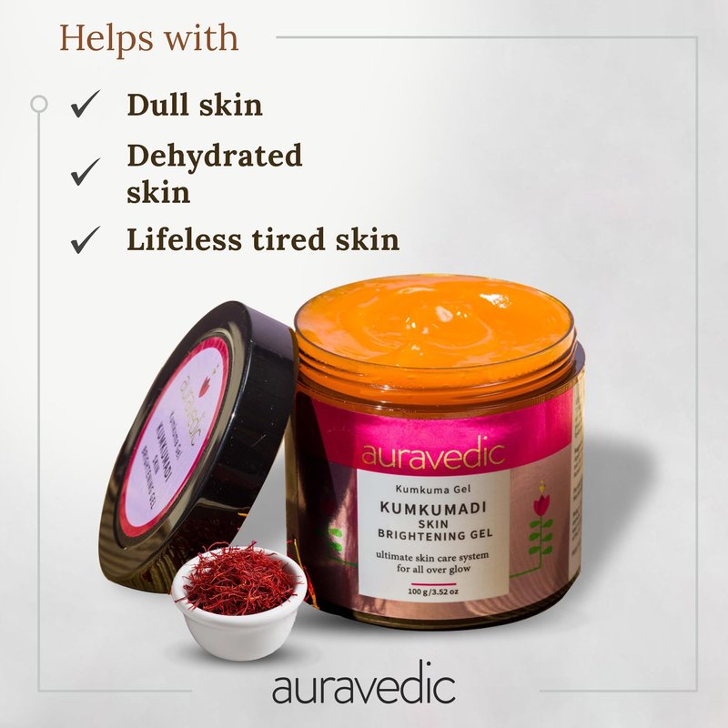 Auravedic Kumkumadi Gel | Saffron Infused Face Moisturizer to Revive Dull Skin | Long Lasting Hydration for All Skin Types | Natural Skin Illuminator | 3.53 Oz/100g