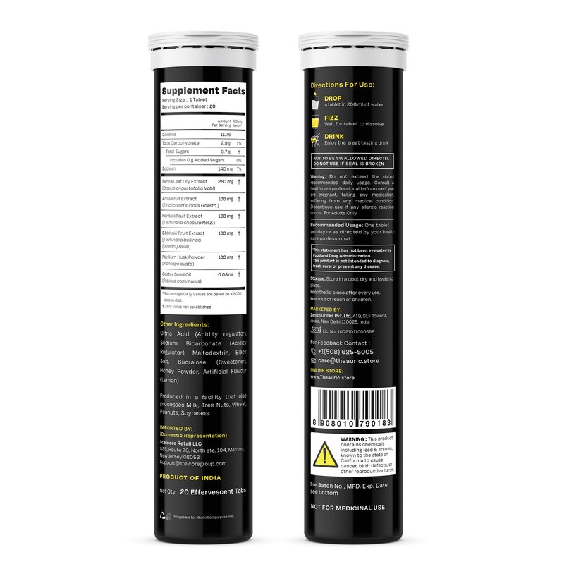 Auric Flush 365 Effervescent 60 Tablets Herbal Digestive Support | with Triphala, Isabgol, Castor Oil & Senna | Honey Lemon Flavor | Support Bowel & Gut Cleanse | Plant-Based Supplement
