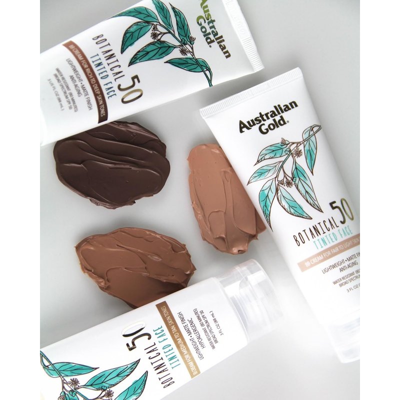 - POWERFUL NATURAL SUNSCREEN FOR SKIN SUN PROTECTION - The gentle Australian Gold Botanical SPF 50 Tinted Face Mineral Lotion with zinc & titanium offers broad-spectrum protection that blocks harmful UV rays off your face, for a refreshing powdery finish