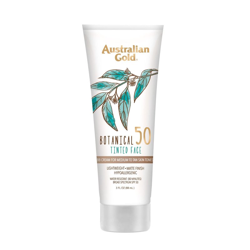 Australian Gold Botanical SPF 50 Tinted Mineral Sunscreen for Face, Non-Chemical BB Cream, Water-Resistant, Matte Finish, For Sensitive Facial Skin, Medium to Tan Skin Tones, 3 FL Oz
