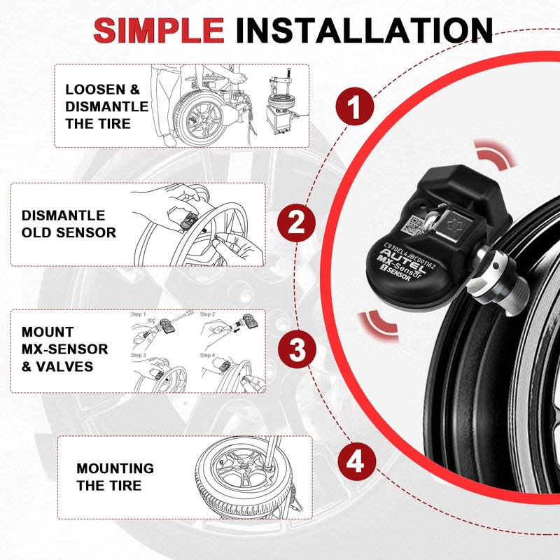 - đ„ăEasy-to-Install-and-to-UseăAutel MX-sensor has two types valve stems (rubber & metal) and it can be easily easily to be removed and replaced by hand at ease without a tool. The valve stem is angle-adjustable (15° to 30°), making it much more easier to install comparing to common TPMS sensors. The 1-Sensor body weighs only 11g, lighter than most sensors in the market, which ensures better sensor stability and performance.