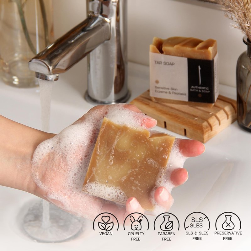 - ECO-FRIENDLY AND SUSTAINABLE - Our tar soap is vegan and cruelty-free, paraben-free, sulfate-free, dye-free, and free from harsh chemicals. It is packaged in environmentally responsible materials.