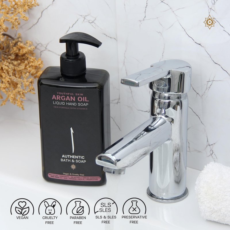 - NOURISHING AND HYDRATING - Infused with high-quality argan oil and Vitamin E, our liquid hand soap boasts anti-aging and skin-softening properties, ideal for everyday hand care.